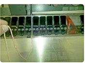 Generally the jogger springs work better than brushes, but both should be tried. (Brushes work well just prior to stitching, but that’s for another article.) The springs usually have a V-shape slot that rides over the signature and can scratch a coated sheet if not carefully set. That’s one occasion when they get removed. In those cases, you can tape up the spring to eliminate the scratching. Alternatively, use one or more pieces of chipboard in place of the springs. Change grain direction for more or less tension, and add extra pieces of chipboard to increase tension further. This also works well just after cover feeders. (shown in photo at right.)